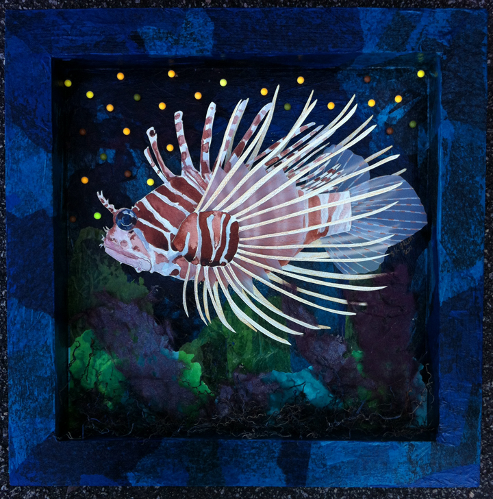 - Lion Fish, 18″ x 18″, mixed media