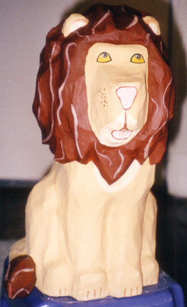 - Laughing Lion, 8″ x 10″ x 14″, paper mache