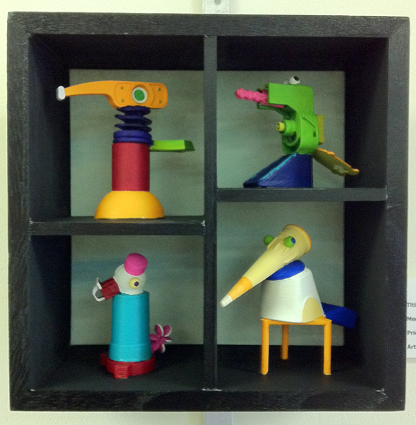 Here are some 3D works in a variety of media, including clay, paper, assemblage and paper mache. I enjoy trying out new materials.