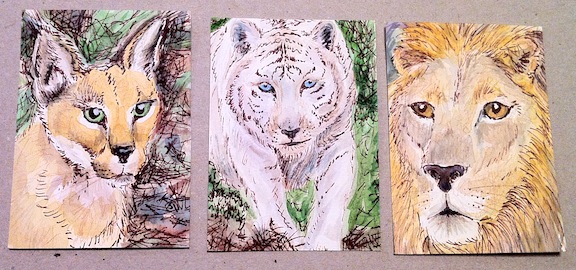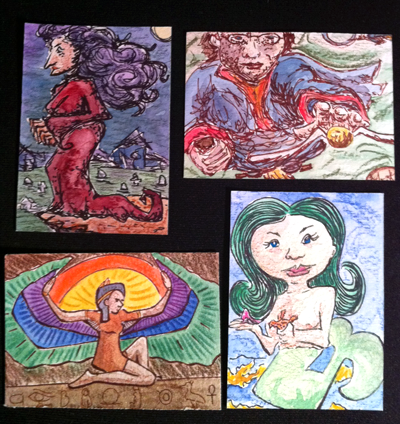 Here are some ATCS (artist trading cards), experiments and sketches. This page is for ideas and projects that are for fun or trying out new stuff. If you ever want to trade cards with me look me up at ATCsforall.com as sheala.draws.