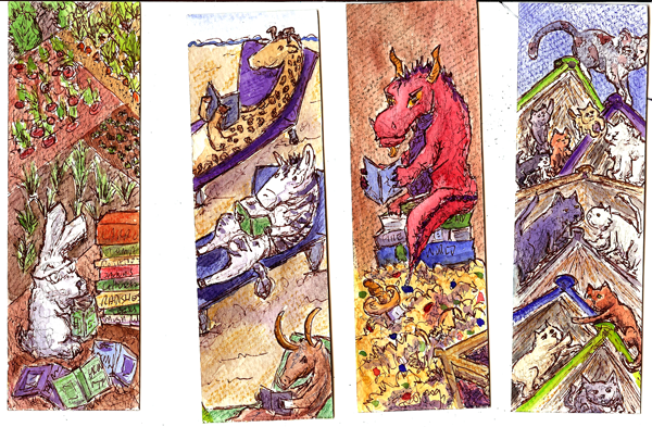 - Bookmarks ATC, 2″ x 6″, wc & ink