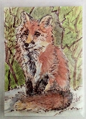- Red Fox, ATC, 2.5″ x 3.5″, wc & ink