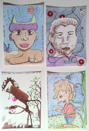 - Odd Postcards, 4″ x 6″, wc & ink