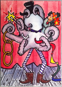 - Zetti Octopus, ATC, 2.5″ x 3.5″, collage, wc & ink
