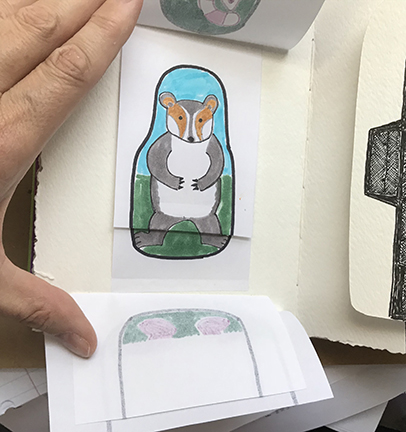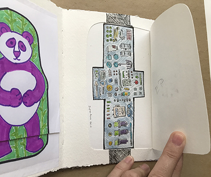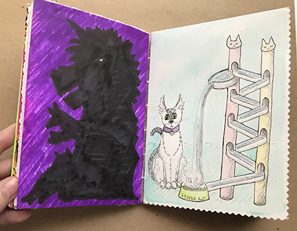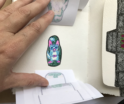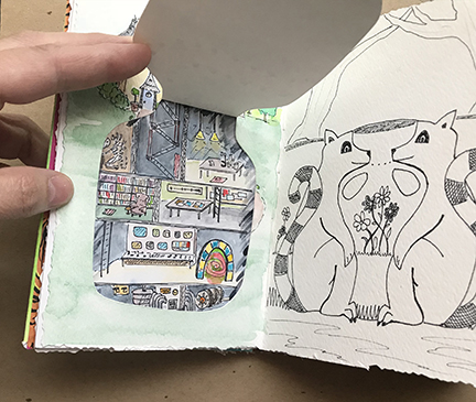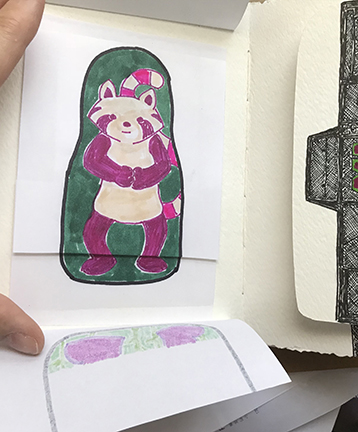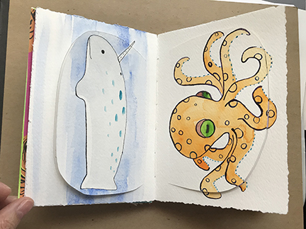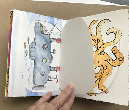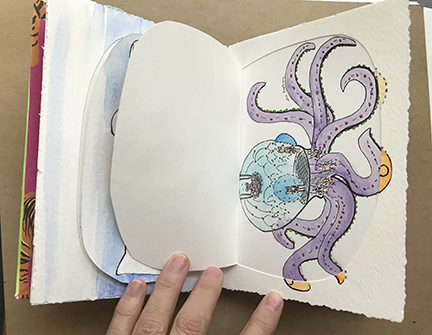 Finally! Here’s the photos of my latest Sketchbook Project. I apparently almost got too ambitious. I decided to do hidden things, which made the book really interactive, with flaps to lift and messages within messages. It was a lot of fun!